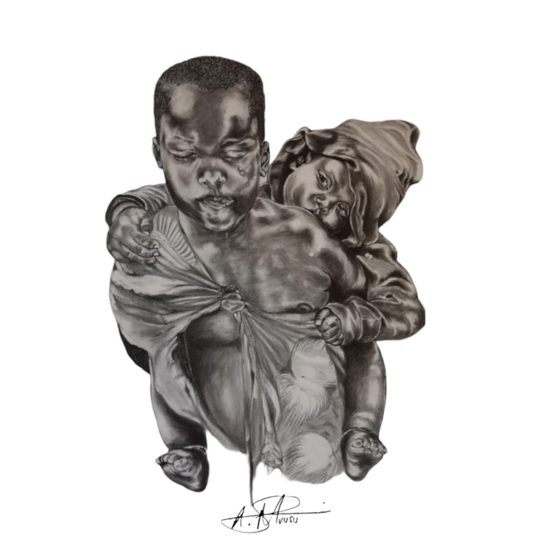 This work is a frozen moment, perhaps between a mother and daughter, sisters, or friends, a bond where presence matters more than words. It is a celebration of quiet love, cultural strength, and the profound beauty of human connection (UkuXhumana).